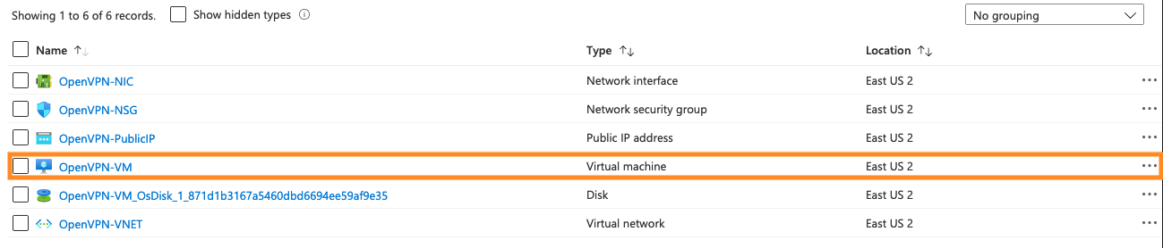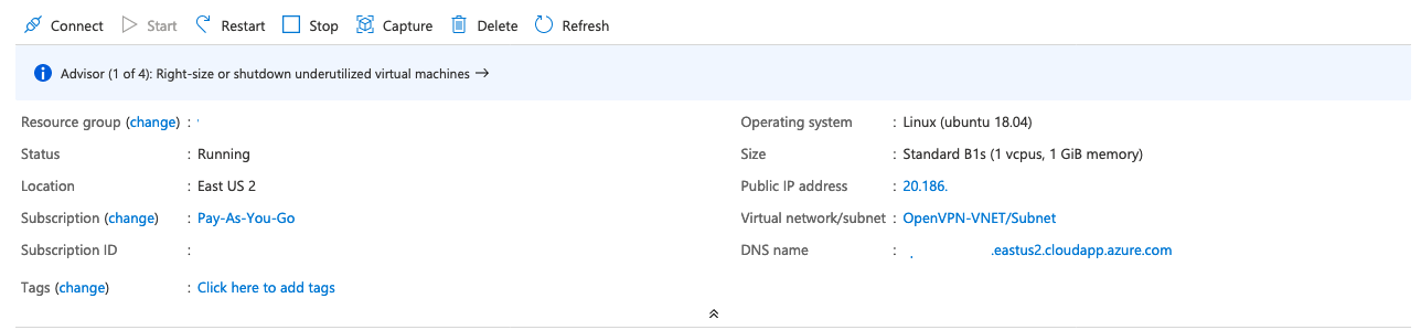 From the page for your Resource Group you accessed earlier you’ll want to click on OpenVPN-VM which will bring you to the overview page for the VM you created.