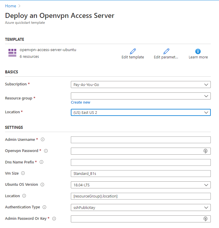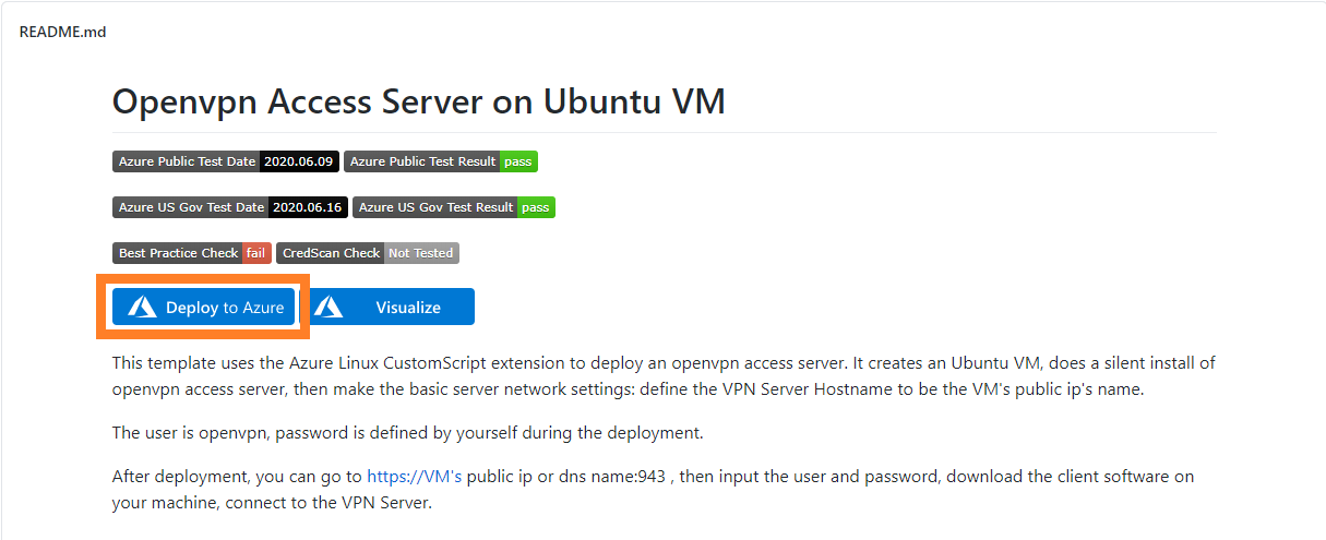 After you’ve created your Azure account (or logged into your Azure account) you’ll want to head to the Openvpn Access Server on Ubuntu VM Quickstart page on Github.