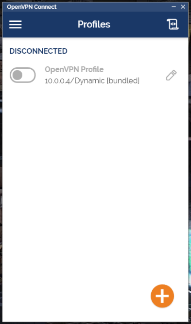 Once you’ve finished the installation you’ll want to find and open the program OpenVPN Connect. Feel free to skip the tour and agree to anything that pops up. After you’ve gone through all of that you’ll be presented with the Profiles page. There might already be one there but we’re going to delete it and replace it.