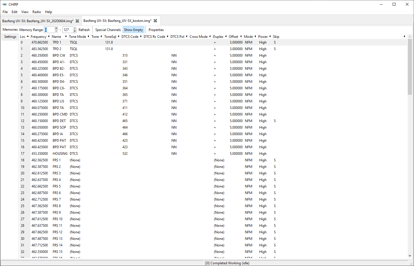 If you’re in the Boston area, have a UV-5R or a CHIPS compatible radio here’s a link to the CSV and img file that my radio is programmed with. The img file is UV-5R specific. This includes all of BPD and MBTA PD.